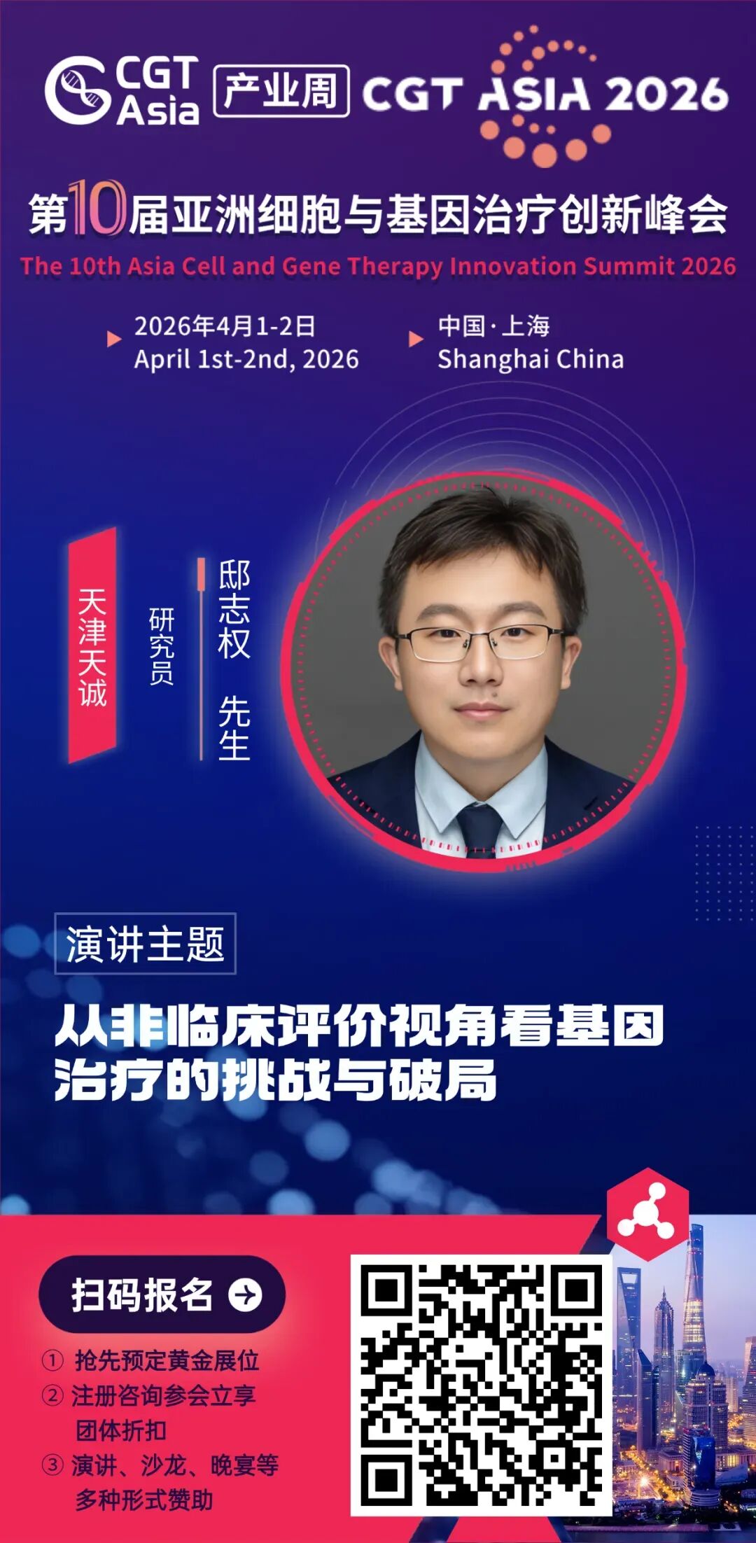 本届大会将深度聚焦细胞与基因药物研发的最前沿动态,解析免疫细胞治疗、基因治疗罕见病、基因编辑、体内CAR-T技术、间充质干细胞、AAV载体等核心技术的发展趋势与融合应用,加速创新疗法从实验室走向应用。此外,峰会将汇聚亚洲顶尖的科学家、临床研究者、企业领袖与政策专家,共同勾勒细胞与基因治疗下一个阶段的发展路径与商业未来。